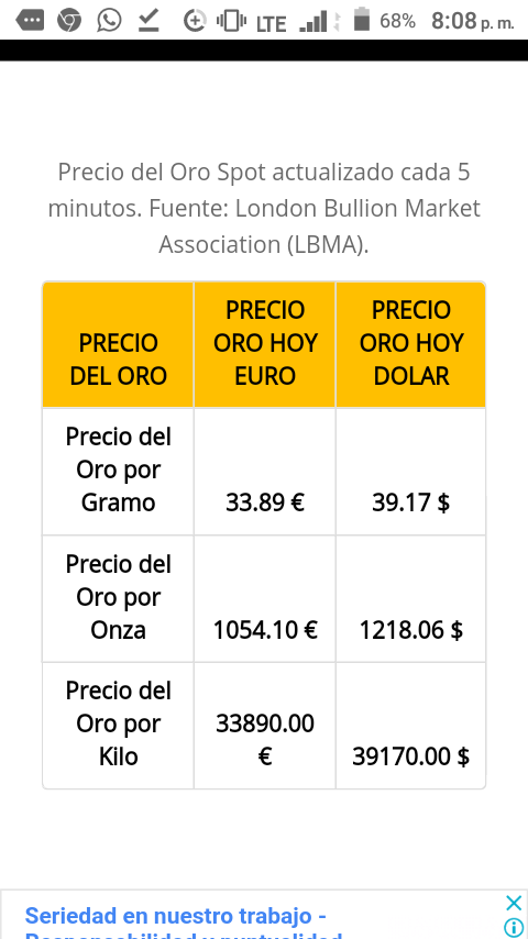 Precio Gramo De Oro Hoy En Venezuela Oro Precios
